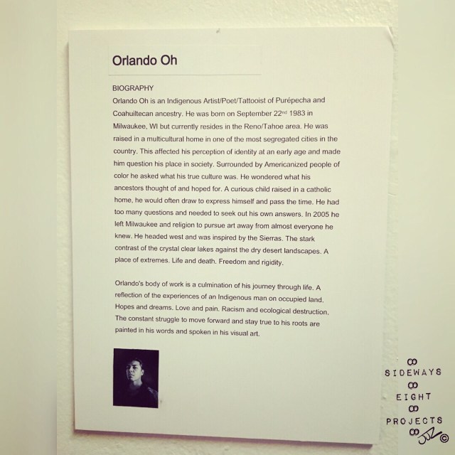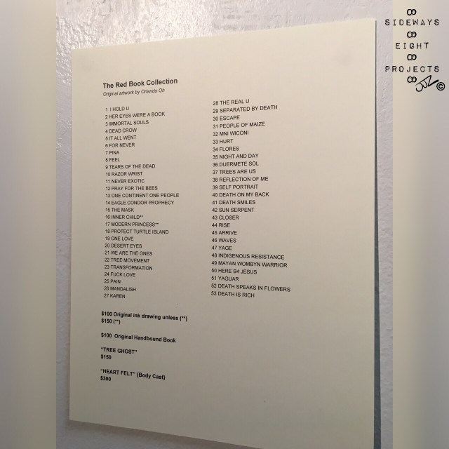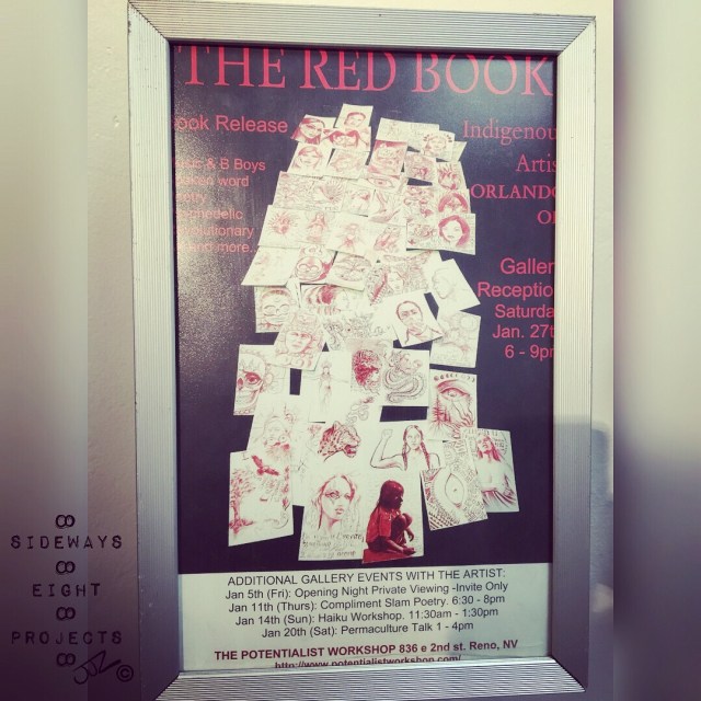 sidewayseightprojectsFriday evening, January 5th, 2018, I had the honor of attending the Special Preview of ‘The Red Book’ Orlando Oh’s gallery opening at the Potentialist Workshop (836 E. Second Ave., Reno, NV). The entire body of amazing work will be on display for the rest of the month of January.