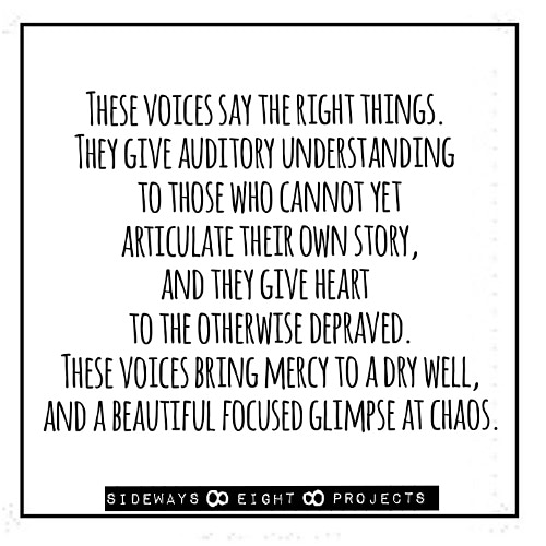 Shared voices in a darkened room lift their attention to the singular light, and the singular voice on display.