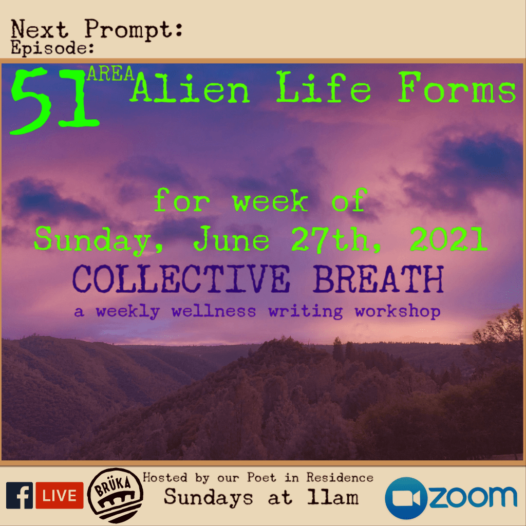 11:15am – Using the link provided in the Facebook Event “Collective Breath”, join on Zoom for the meeting to discuss and share creative output related to the Topic/Prompt. (Group Workshop Portion)